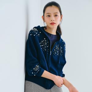 パールビジュー ジップアップ ニットパーカ パーカー スウェット トレーナー 119701