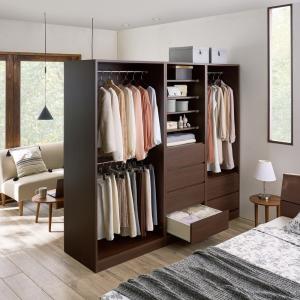 奥行スリムで省スペース オープン間仕切りワードローブ ハンガー2段 幅60奥行54cm 衣類収納 ワードローブ クローゼット 632319