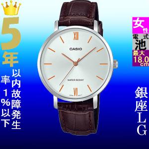 腕時計 レディース カシオ クォーツ ケース幅35mm SCHON 革ベルト シルバー/シルバー/ブラウン色 CASIO 116QLTPVT01L7B2