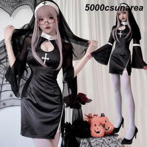 ハロウィン仮装 コスプレ衣装ワンピース修道女コスチューム 大人用シスター牧師 ドレス宣教師 レディース 修士コスプレ衣装 コス 女性 お化け 膝丈