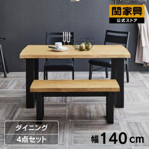 関家具 公式店 ダイニング 4点セット テーブル 140cm チェア 2脚 ベンチ ライトブラウン ブラック 北欧 レイド D4点 大型便