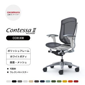 オカムラ コンテッサ セコンダ ハイバック CC81XW 可動肘 ポリッシュフレーム ホワイトボディ 座:メッシュ ウレタンキャスター オフィスチェア