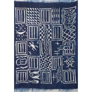 アフリカ ナイジェリア イボ族 ラフィア 絞り 藍染 LLサイズ No.1