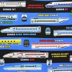 キャラクター 生地 布 JR特急・新幹線 ( 紺系 ) 柄番号28 ( 2023 ー 2024 ) オックス ( 綿100% ) 生地幅−約108cm a-8000-31a-kk-7717