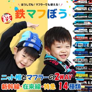鉄マフぼう ニット帽 マフラー キッズ 2WAY 子供 ベビー 鉄道 電車 新幹線 襟巻き 帽子 男の子 女の子 ボンボン付き プレゼント 誕生日 孫 送料無料