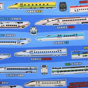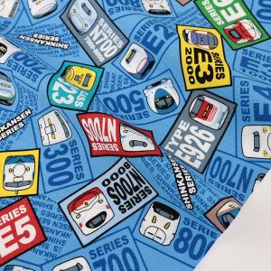 ◇ キャラクター 生地 布 JR特急 新幹線 ( ブルー系 )柄番号24 ( 2021 - 2022 ) オックス( 綿100% ) 生地幅−約108cm A8000-27B-kk-6829