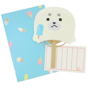 グリーティングカード あにまる竹うちわカード 一筆箋付きサマーカード あざらし アクティブコーポレーション