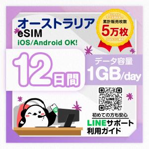 オーストラリアeSIM:使用日数:12日間/データ容量:1GB(day)/簡単設定/有効期限90日/最短即日発行/パスポート番号不要/データ通信専用