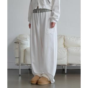 スウェットパンツ ジャージ 「豊富な4カラー展開」「スタイリッシュにセットアップ着用おすすめ」ウエストゴムフラワーアプリケットバイカラーチェック配色ス