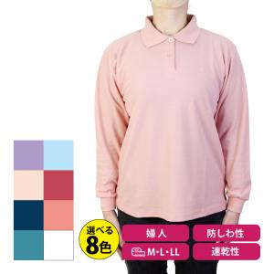 ポロシャツ レディース 長袖 カラーポロシャツ 鹿の子ポロシャツ ユニフォーム 仕事着 会社 速乾性 防しわ ガーデニングポロ
