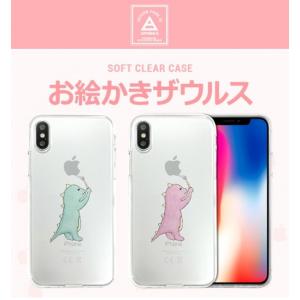 <Dparks(ディーパークス)>【iPhone XS Max 6.5インチ】 ソフトクリアケース お絵かきザウルス透明なケースにアップルロゴを活かしたイラスト DS14872i65