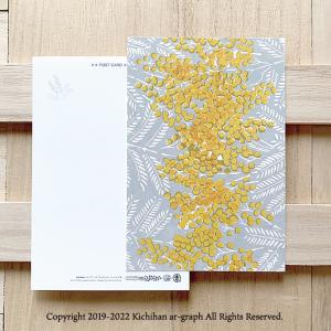 【第3版】ミモザ 文様 パターン レトロ デザインポストカード/2枚