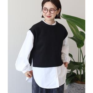 ブラウス シャツ SET イージーケアロングシャツ+ニットベスト レディース