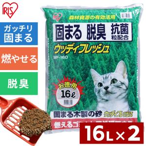 猫砂 アイリスオーヤマ 木製 消臭 抗菌 固まる猫砂 16L 2袋セット まとめ買い ネコ砂 猫トイレ トイレ 砂 WF-160