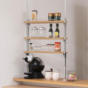 RITZ オープンラック 3段 上下可動 突っ張り カウンター上オープンラック 無段階収納棚 マリンナチュラル 日本製 キッチンラック スリム収納ラック 代引不可