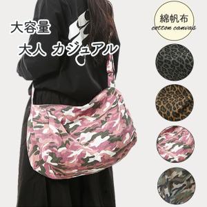大容量 ショルダーバッグ 迷彩 カモフラ アニマル柄 ヒョウ柄 帆布 バッグ キャンバス 男女兼用 レディース メンズ 厚手 綿 コットン