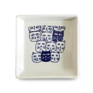 J-kitchens 勲山窯 角 皿 S 波佐見焼 日本製 12.2m x 12.2m x 2cm キャッツ ブルー