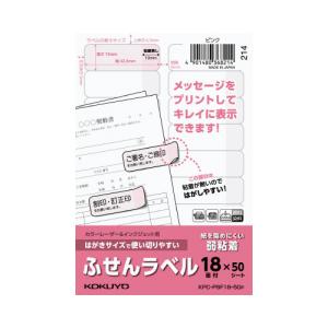 コクヨ KOKUYO はがきサイズで使い切りやすい ふせんラベル 18面 ピンク KPC-PSF18-50P ★ネコポス