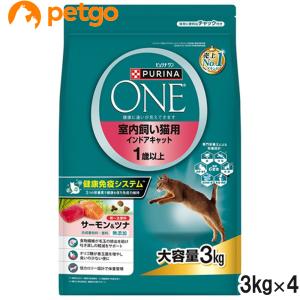 ピュリナワン キャット ドライ 室内飼い猫用 インドアキャット 1歳以上 サーモン&ツナ 3kg×4個【まとめ買い】