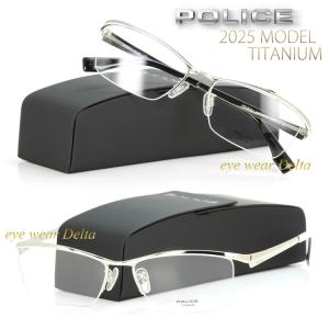 POLICE ポリス チタンフレーム メガネ 国内正規代理店品 2025年モデル VPLR34J-0583 シルバー + ホワイトライン
