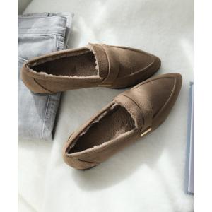 ローファー ボア付き ポインテッドトゥローファー/モカシン防寒パンプス レディース