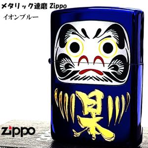 ZIPPO メタリック達磨 ジッポ ライター イオンブルー 彫刻 金差し 和柄 だるま 青金 プレゼント お守り 学業成就 おしゃれ 開運