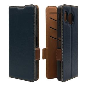 AQUOS sense8 用 薄型手帳ケース サイドマグネット ネイビー×ブラウン