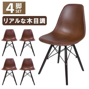 イームズ 木目調 チェア 4脚セット DSW リプロダクト シェルチェア###チェア9001木目4個◆###