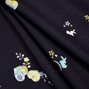 東レシルック 紋意匠小紋 古代紫色 跳兎 葵 親子ウサギ 洗える着物 単衣 袷 反物 着尺
