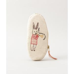 ポーチ コットンリネン刺繍ポーチ ウサギ レディース