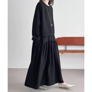 ワンピース 異素材切替段ボールスウェットワンピース