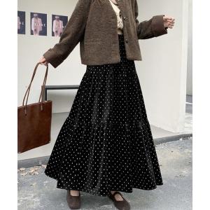 スカート ドット柄スエードティアードスカート