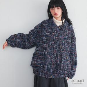 ブルゾン レディース アウター 長袖 ジャケット ツイード 襟付き 裏地付き ゆったり 防寒 50代 秋 冬 返品交換不可「メール便不可」「40」