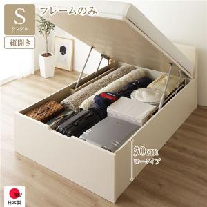 〔お客様組み立て〕 収納 ベッド 通常丈 シングル 跳ね上げ式 縦開き 深さ30cm ロータイプ フレームのみ アイボリー フラットヘッド 日本製 国産