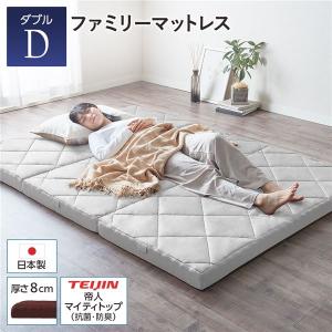 マットレス ファミリータイプ 〔ダブル 厚さ8cm グレー〕 連結 高反発 抗菌 防臭 防ダニ 3つ折りマットレス