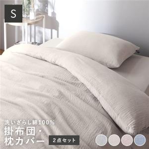 寝具 2点セット シングル 〔 掛け布団カバー + 枕カバー アイボリー 〕 綿100% 洗える 肌触りの良い 洗いざらしコットン100%