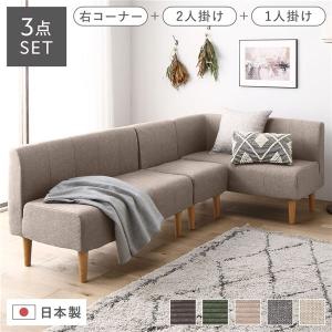 日本製 ダイニングソファ 3点セット 右コーナー+2人掛け+1人掛け ベージュ ナチュラル脚 ポケットコイル ソファセット