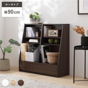 ブックラック 本棚 ロータイプ 約幅90cm ダークブラウン 薄型 スリム 引き出し 可動棚 ブックシェルフ リビング 収納家具