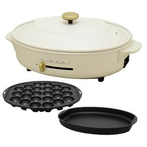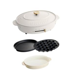 BRUNO ブルーノ オーバルホットプレート 本体 プレート3種 (たこ焼き 深鍋 平面) ホワイト 白 おしゃれ かわいい これ1台 一台 蓋