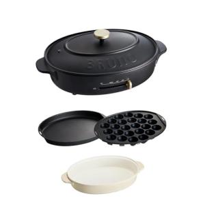BRUNO ブルーノ オーバルホットプレート 本体 プレート3種 (たこ焼き 深鍋 平面) ブラック Black 黒 おしゃれ かわいい これ1台 一