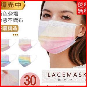 【値下げ】新登場 マスク 不織布 30枚入 カラー キラキラ レースマスク チュールマスク 接触冷感 夏用 四層 虹柄 大人用 女性 飛沫 風邪 秋 4色