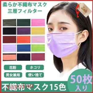 【値下げ】マスク 50枚入り カラーマスク 不織布 3層構造 使い捨て 色付き おしゃれ ノーズワイヤー のみ