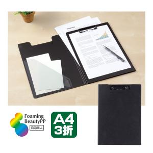 クリップボード バインダー A4 3折 トリプル 発泡美人 ブラック 文具 軽量 収納 整理 書類 挟む 持ち運び オフィス ビジネス 学校 イベント