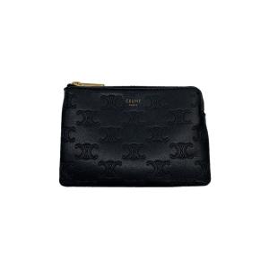 CELINE セリーヌ トリオンフ レザー コインケース ブラック 10C663DR8.38NO レディース 中古