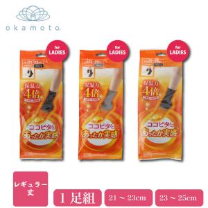 ココピタプラス あったか実感 婦人 レギュラー丈 クルーソックス 21-23cm 23-25cm 送料無料 靴が履ける厚み 冷え対策 あったかい 岡本 OKAMOTO
