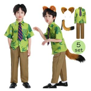 ハロウィン キッズ コスプレ キツネ詐欺師 ニック コスプレ 子供しっぽ 可愛い 耳付 しっぽ 仮装 学園祭 ニック シャツ パンツ ネクタイ