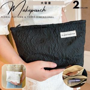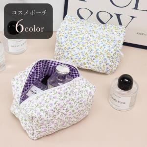 コスメポーチ 化粧ポーチ レディース 女性 収納グッズ 生活雑貨 日用雑貨 大きめ 幅広 ボックスポーチ マチあり チャック ジッパー 総柄 フラワー