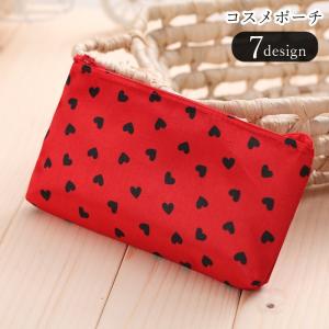 コスメポーチ 化粧ポーチ ペンケース 筆箱 小物入れ レディース 女性 収納雑貨 整理雑貨 長方形 横長 チャック ジッパー 総柄 ハート ヒョウ柄