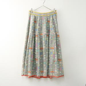 美品 人気シリーズ フランシュリッペ franche lippee ミニチュアコレクタースカート M グレー/総柄 ロング丈 ボリューム【2400014515992】
