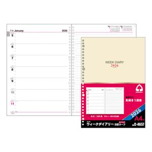 ☆コレクト 2026年版手帳 ウィークダイアリー 見開き1週間 A4 リングバインダー用差し替えリーフ30穴('26.1〜12) C-4657